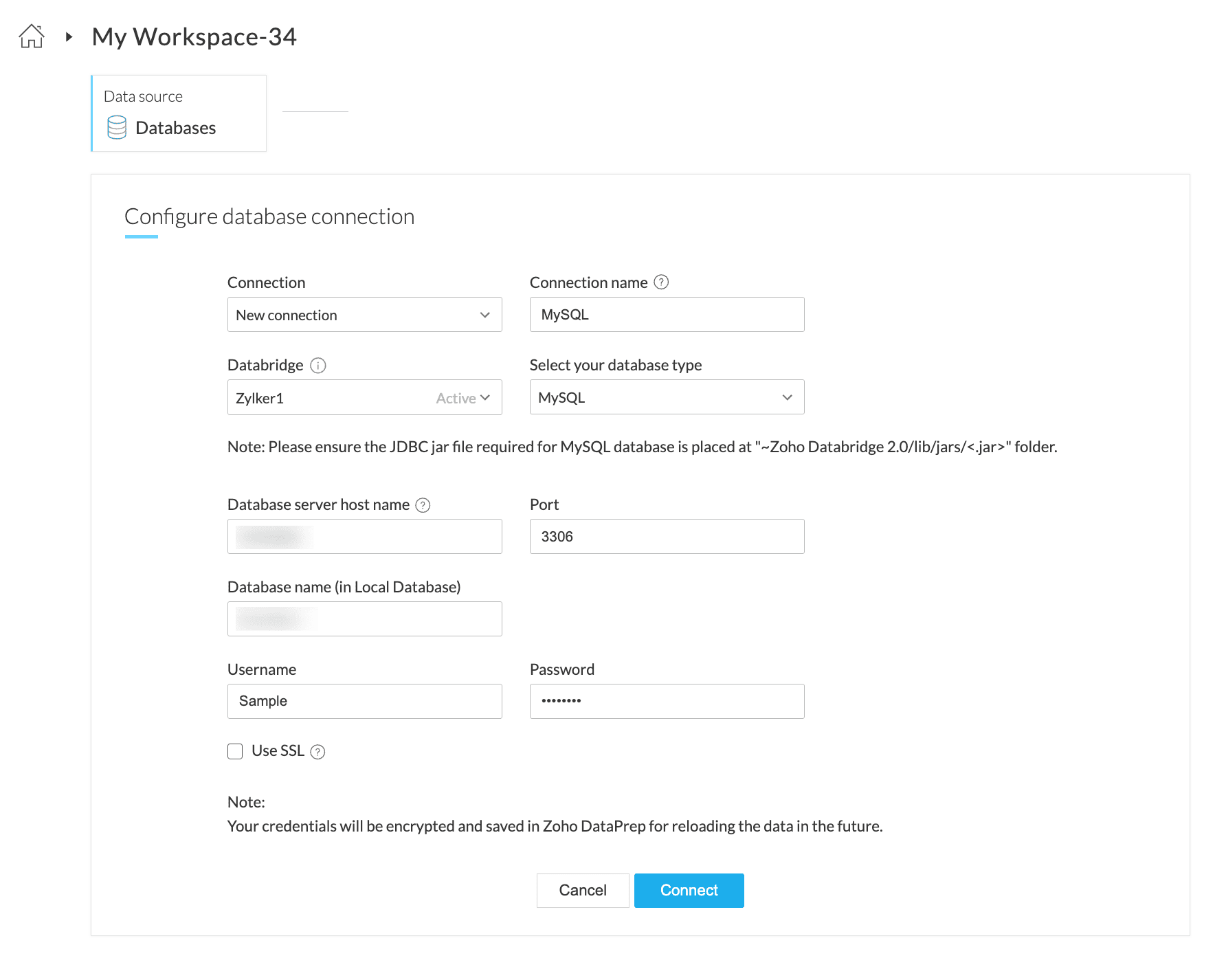 2. データベースの正しいログインする認証情報をお持ちであることをご確認ください。ベストプラクティスとして、該当データベースのネイティブなデータベース管理ソフトウェアを利用可能な場合は、それを使用して Zoho DataPrep サーバーからターゲットデータベースへの接続テストを行ってください。