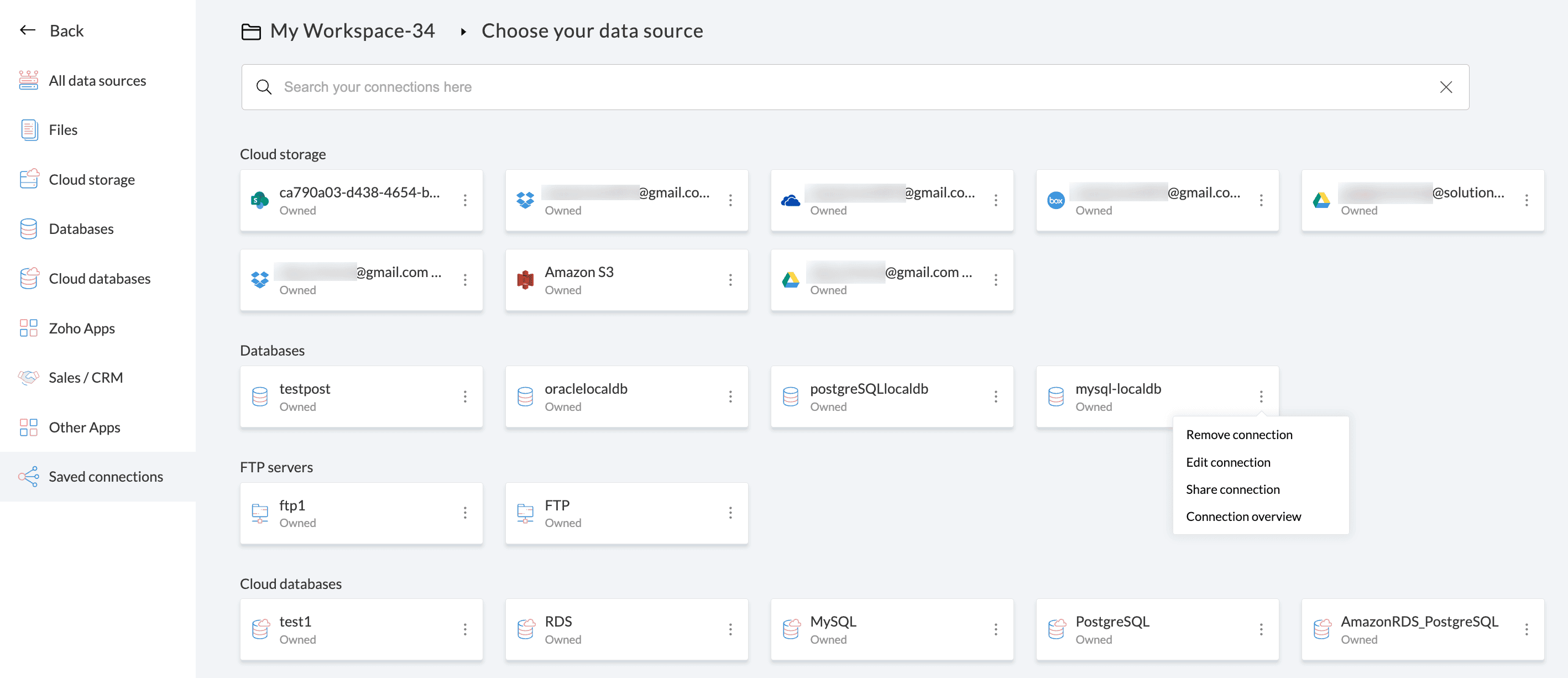 3. 編集 connectionオプションをクリックして、保存済み接続を新しいパラメーターや認証情報で更新します。