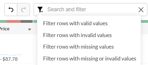 - 欠損値または無効な値のある行をフィルター - 欠損または無効なデータのみが表示されます。