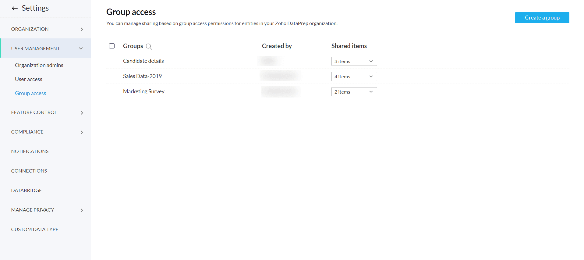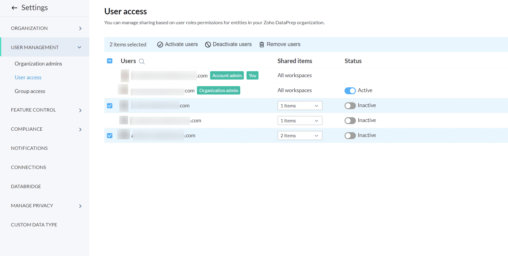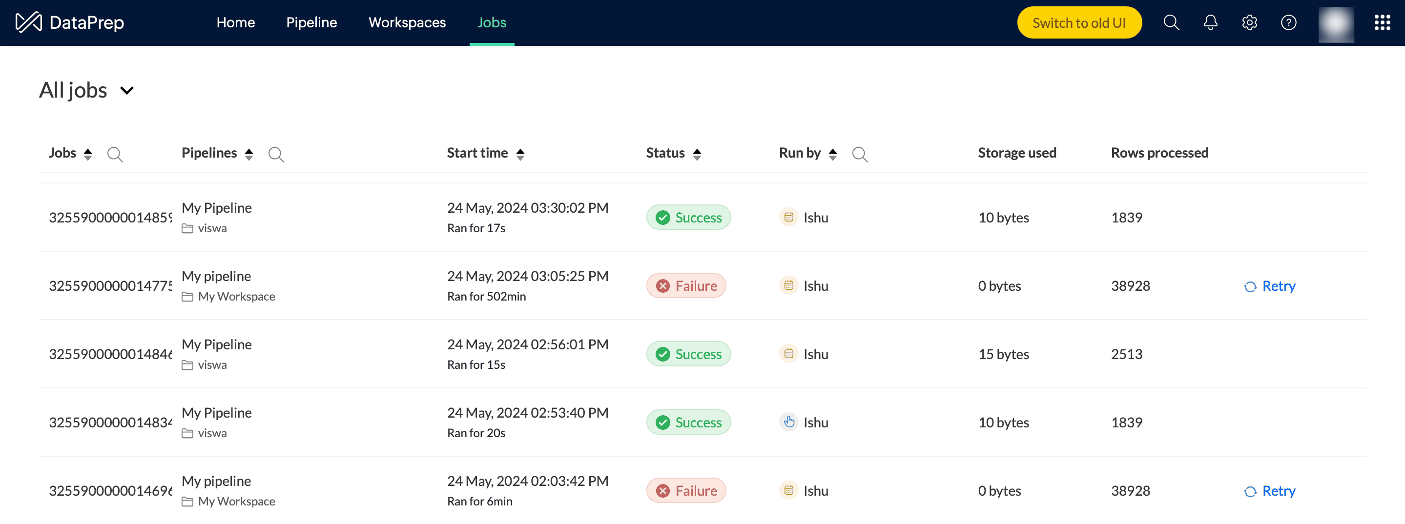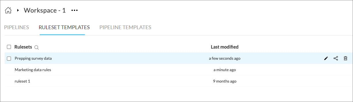 テーブルヘッダー上部の各アイコンを利用して、パイプラインを素早く並べ替えたり検索したりできます。パイプライン名の左側にあるチェックボックスを使うと、複数選択し、一度に複数のパイプラインを共有または削除することが可能です。パイプラインの共有方法についてはこちらをご覧ください。