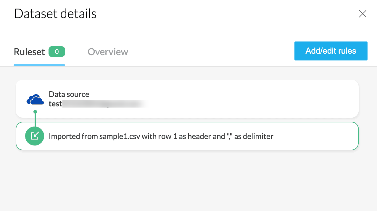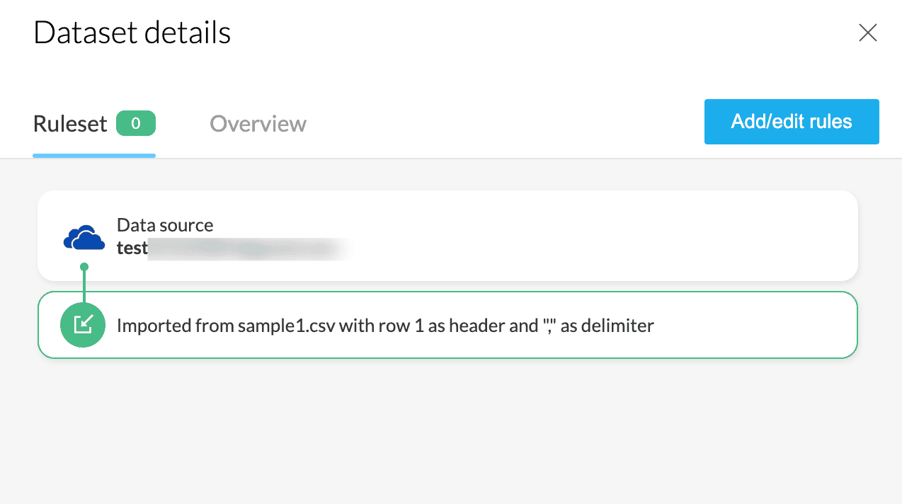 ルールセット:各トランスフォームがデータセットに適用されると、DataPrepではそれらがルールとして実行順に保存されます。これらのルールを順に並べたリストをルールセットと呼びます。ルールセットはルールセットペインからアクセスでき、ここでステージに適用されたルールの追加、編集、削除が可能です。