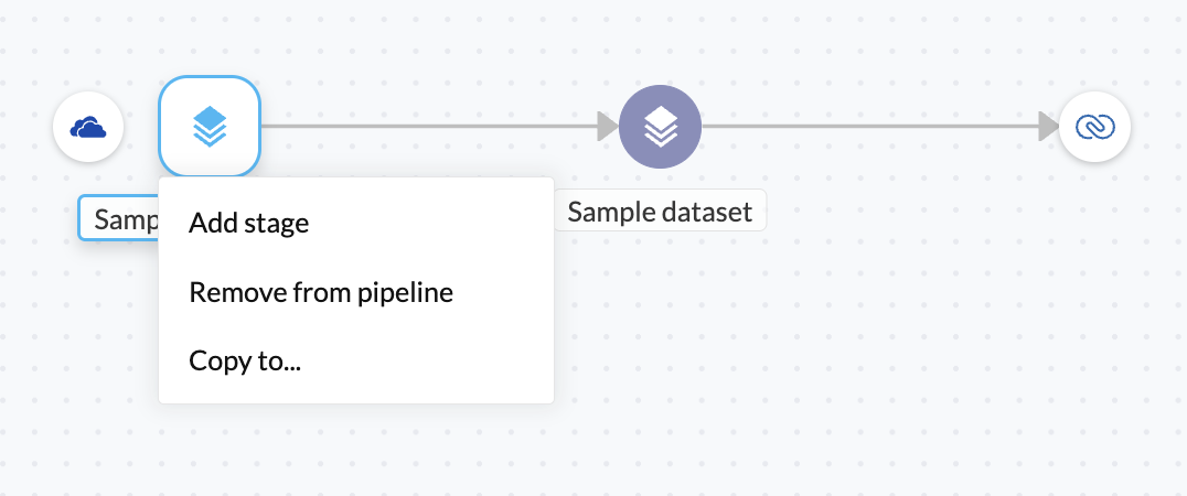 パイプラインから削除 - このオプションを使用して、インポートしたデータおよびフローをパイプラインから削除できます。