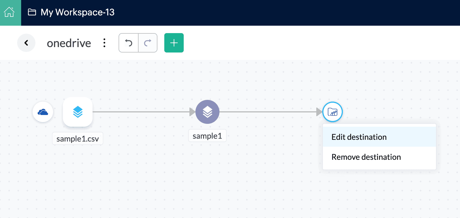 編集 destination - このオプションでパイプラインのデスティネーションを変更できます。編集 destinationをクリックすると、選択する your destinationダイアログボックスが表示され、DataPrepで50以上のデータデスティネーション出力から標準のデスティネーションを選択することができます。