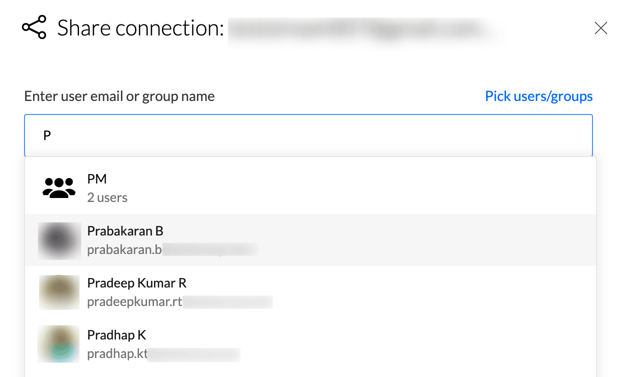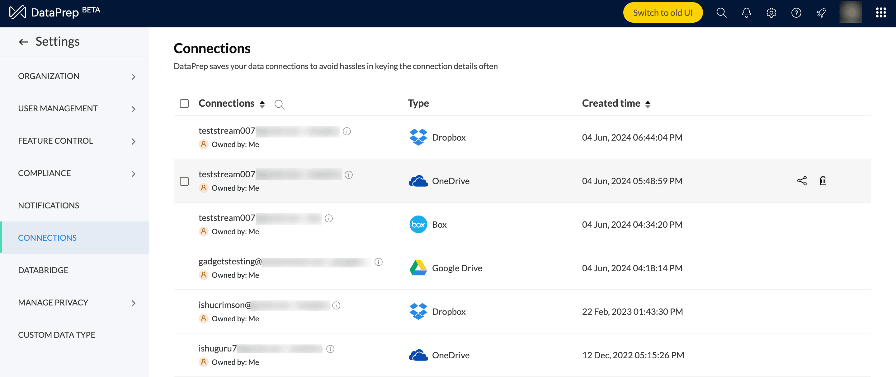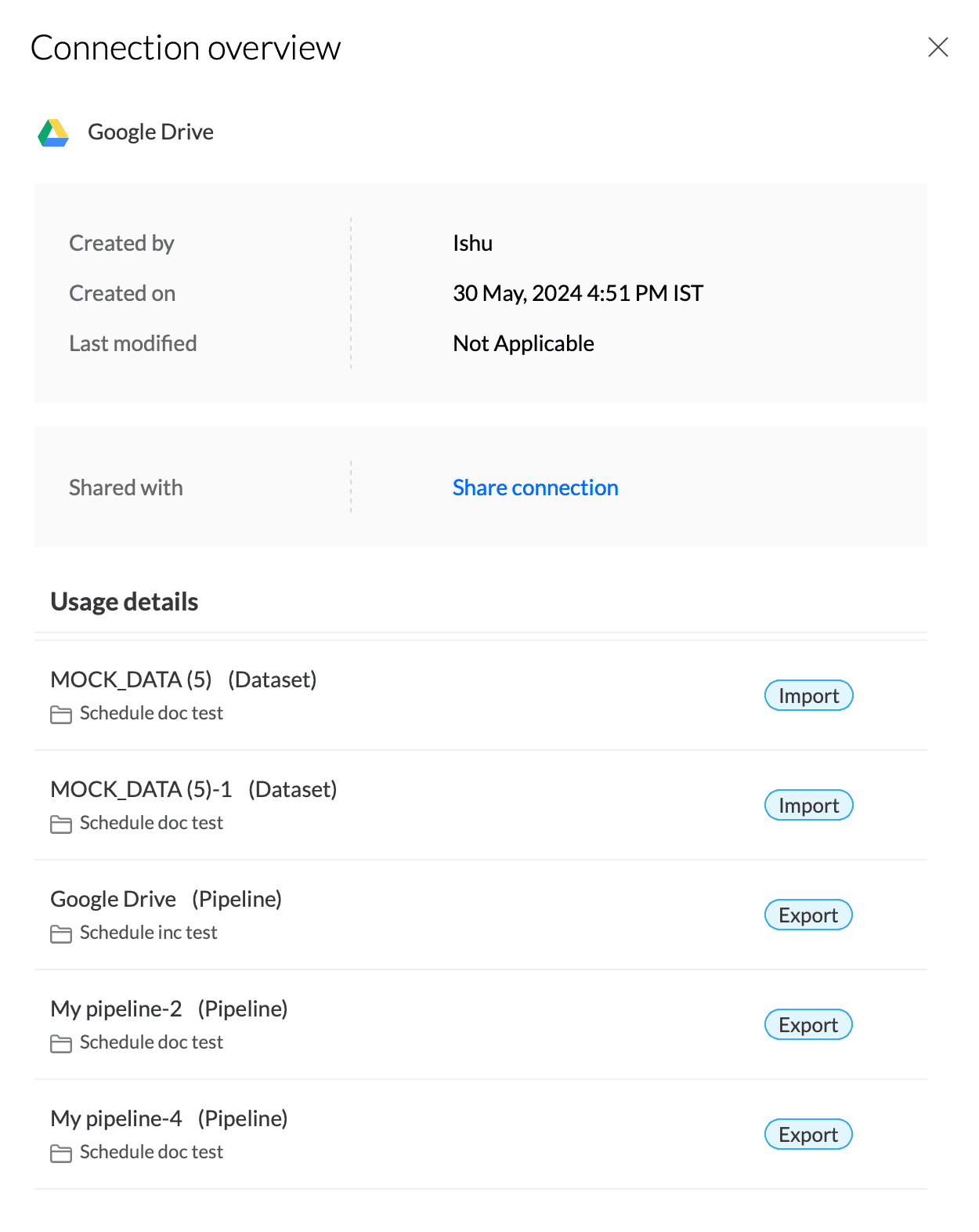 DataPrep では、他のユーザーと connection 詳細や connection を項目として共有できます。