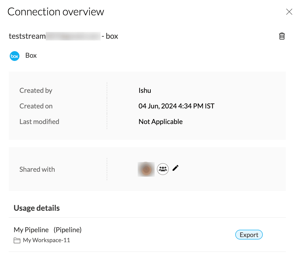 4. 共有する connectionリンクをクリックすることで、外部連携を共有できます。共有方法の詳細については、こちらをクリックしてください。