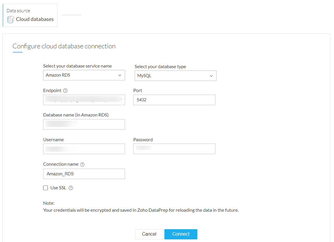 Zoho DataPrepは、クラウドデータベースであるAmazon RDSへのデータエクスポートに対応しています。Amazon RDSはAmazon Relational Database サービスとも呼ばれ、データベースの設定、運用、スケールを支援します。