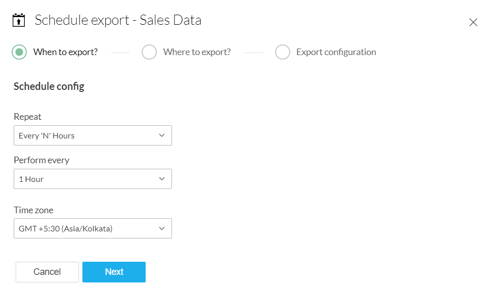 エクスポートのスケジュールオプションを使用して、データエクスポートをスケジューリングできます。
