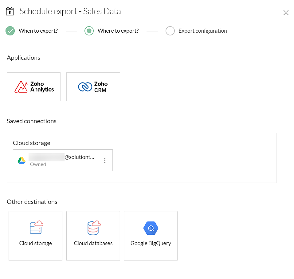 3. 無効なデータを含むデータセットは分析にエクスポートできません。データセットに無効な値が含まれていないことを確認した上で、Zoho Analytics へのエクスポートをスケジュールしてください。