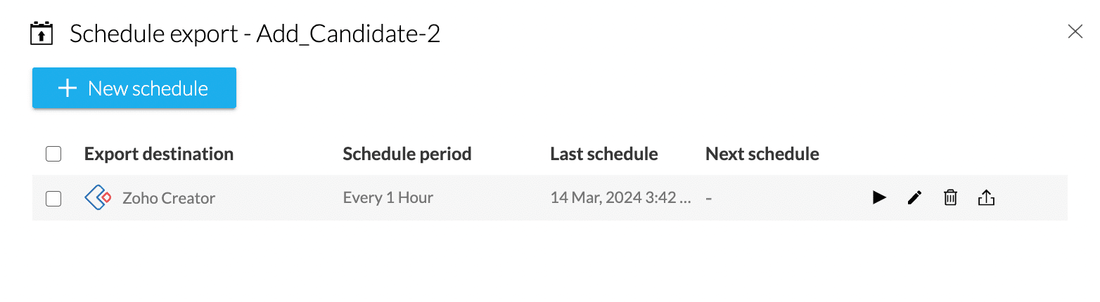 2. 新規 scheduleボタンをクリックして、エクスポート用の新しいスケジュールを作成します。