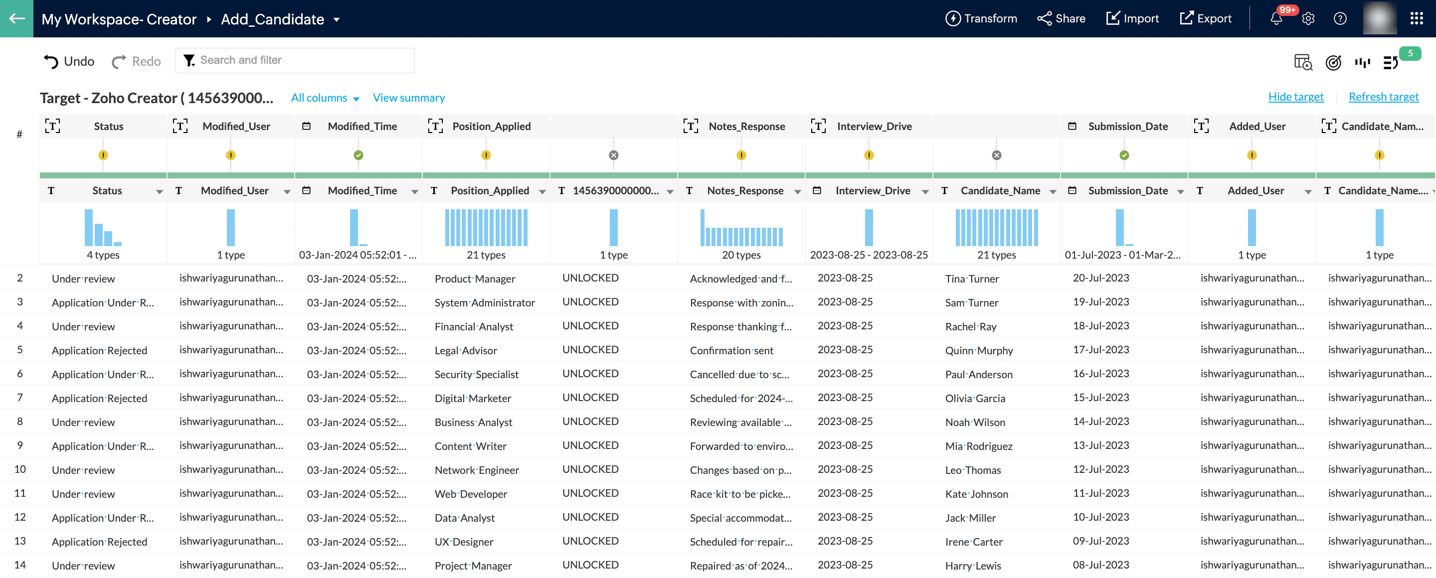 Zoho DataPrepがCreatorデータのさまざまなユースケースでどのように役立つかを参照