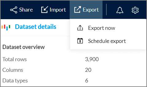 1. エクスポートする nowオプションをエクスポートするメニューからクリックします(DataPrep Studioページ)。