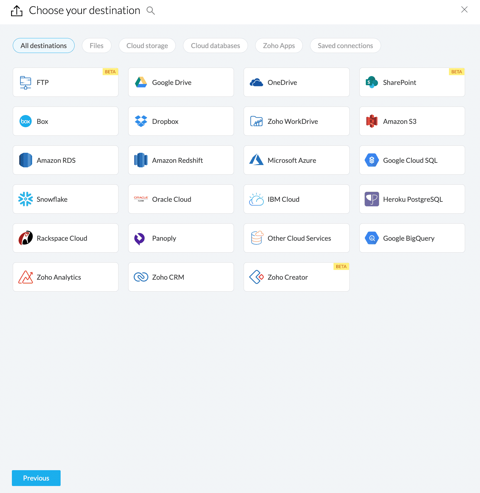 Zoho DataPrepは、Zoho Creator コネクターを使用してデータをZoho Creatorへエクスポートできます。Zoho Creatorは、ビジネス向けカスタムWeb・モバイルアプリを迅速に作成できる強力な低い-コードアプリケーション開発プラットフォームです。