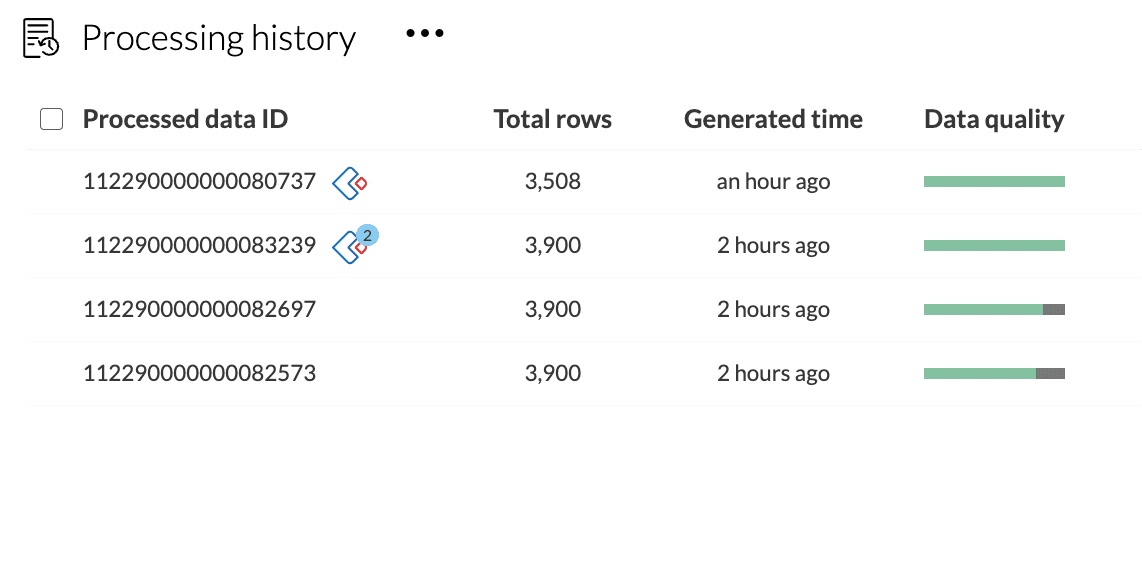 3. サイドパネルが開き、データセットで利用可能なすべての処理済みデータIDと、その作成日時が一覧表示されます。