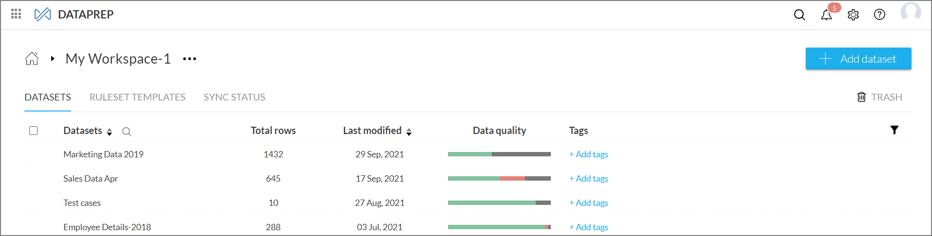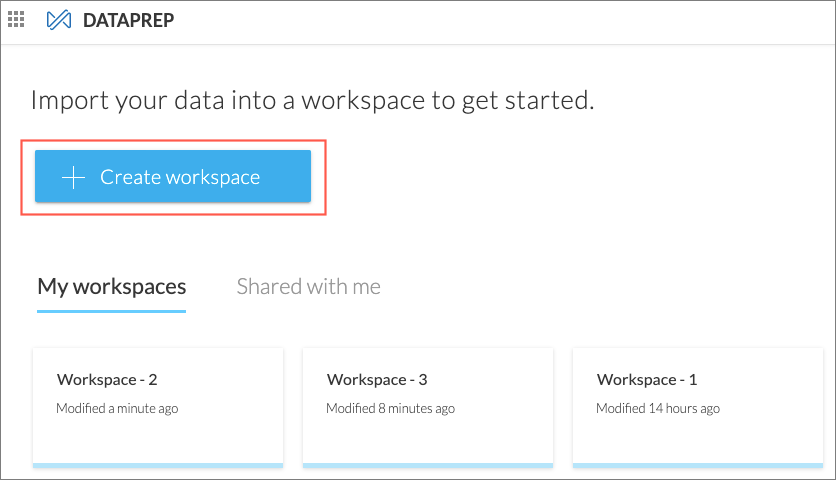 データをインポートするには、新規workspaceを作成するか、既存workspaceを開いてデータセットを追加します。