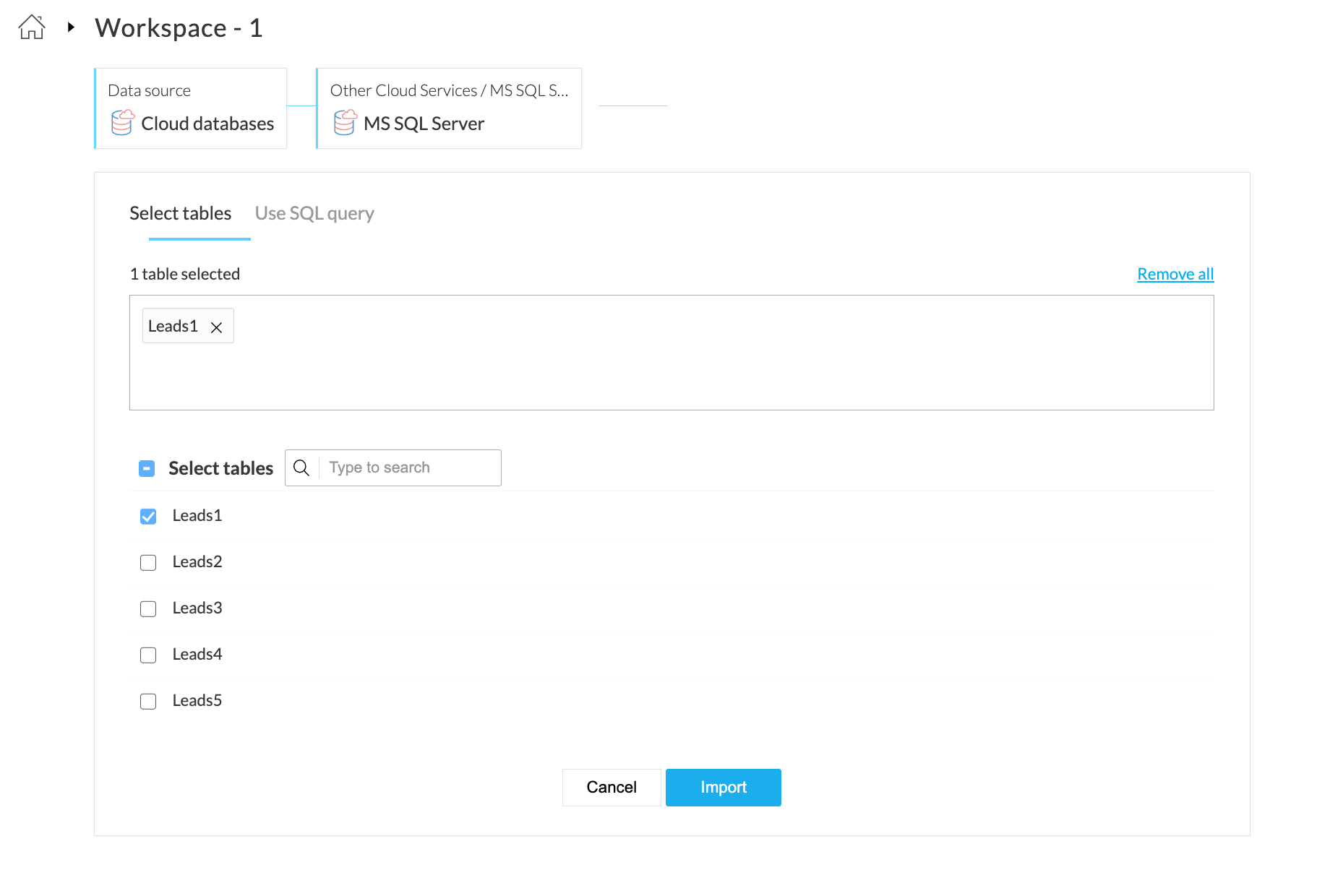 9. インポートするをクリックして、MS SQL Serverアカウントからデータのインポートを開始します。