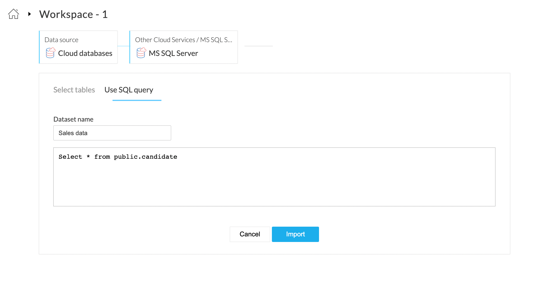 8. 使用する SQL queryオプションを使ってデータを選択し、インポートできます。