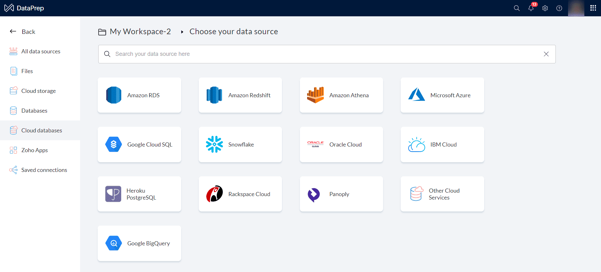 1. 左側のペインからCloud databasesカテゴリーを選択し、Other Cloud サービスをクリックします。また、検索ボックスでOther Cloud サービスと入力して検索することも可能です。