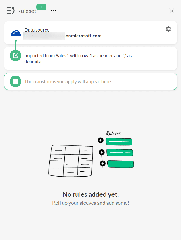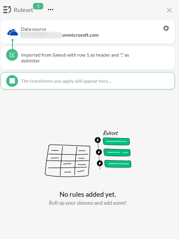 4. 右上のrulesetアイコンをクリックして、DataPrep StudioページでRulesetパネルを表示します。