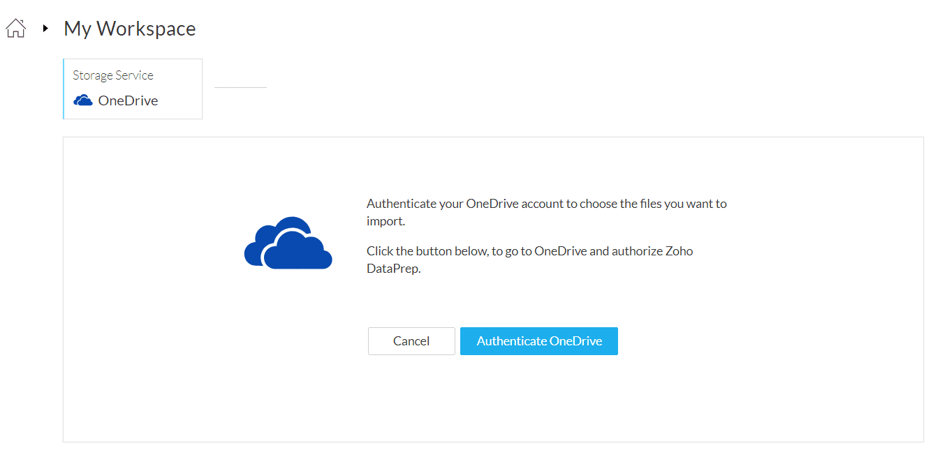 3. OneDriveアカウントを認証します。初めて実行する際は、ファイルへアクセスするためにDataPrepを認証する必要があります。