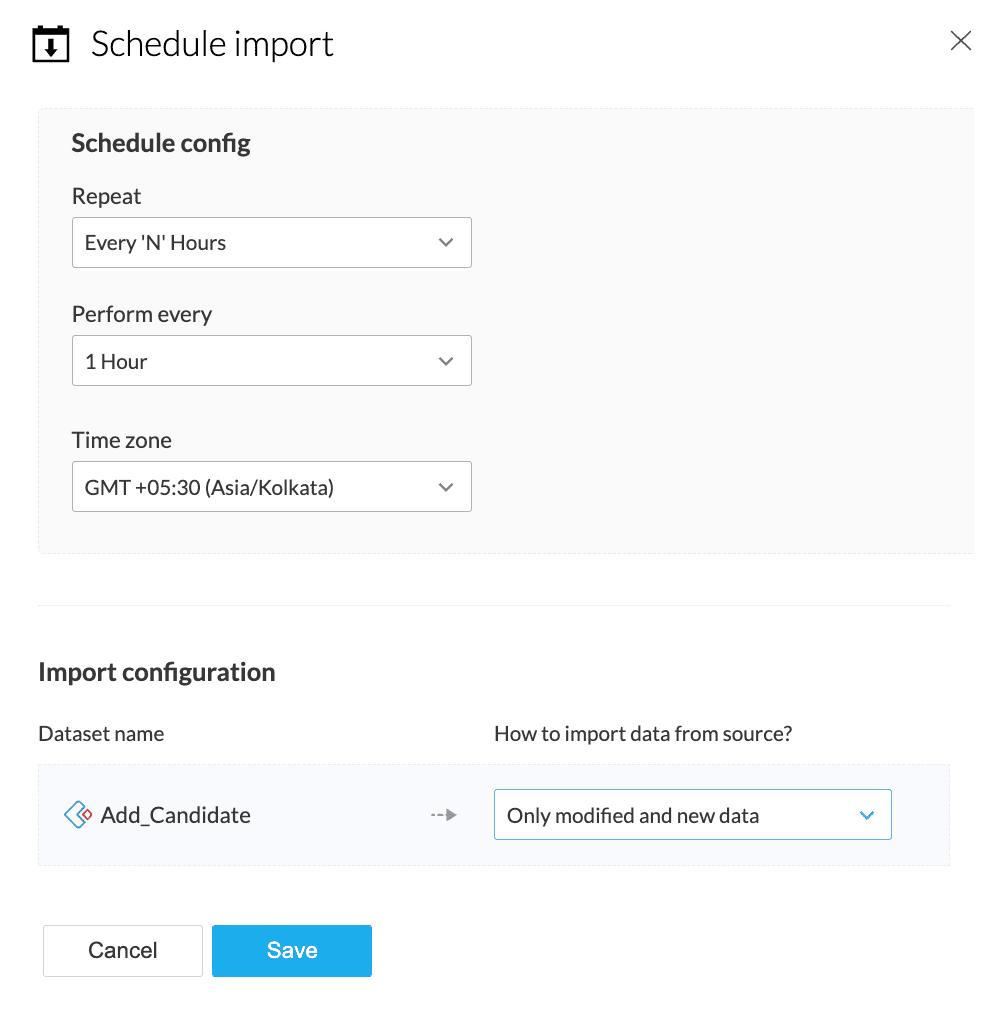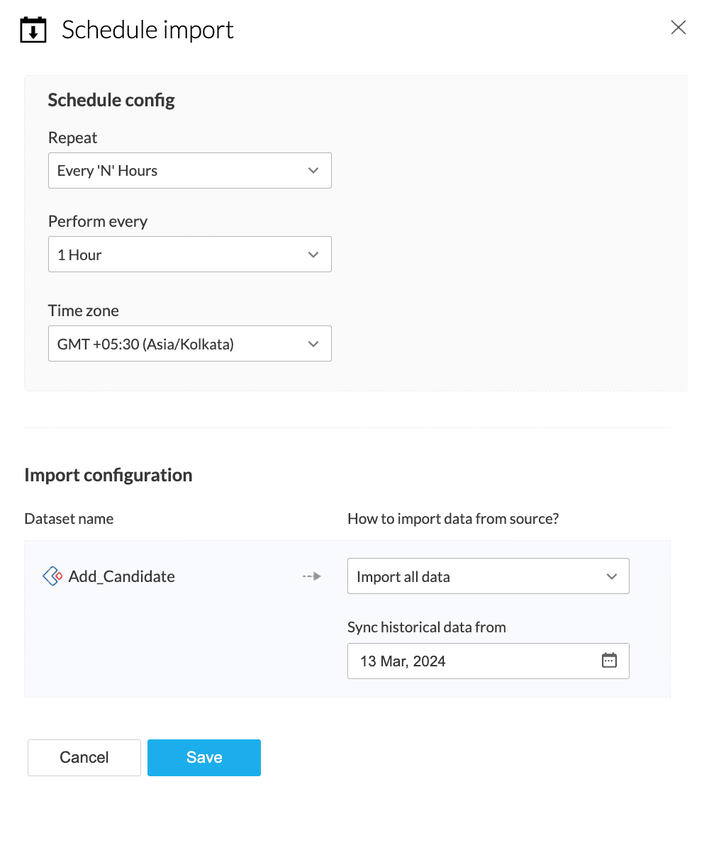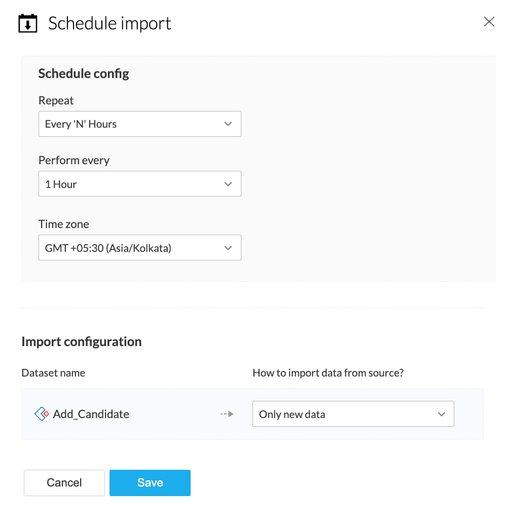 8. 保存をクリックして、データセットのインポートスケジュールを設定します。