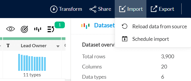 メモ:初めて Zoho DataPrep にデータをインポートする場合は、データセットの追加およびデータのインポート方法についてこちらをご覧ください。