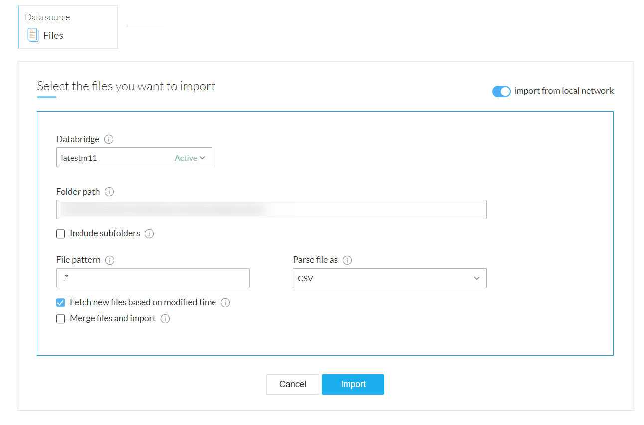 3. ローカルファイルを段階的にインポートしたい場合は、ローカルネットワークからのインポートトグルを有効にします。