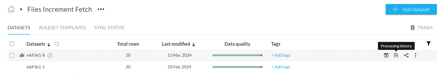 また、頻度syncの処理済みデータをProcessing 履歴パネルで確認できます。