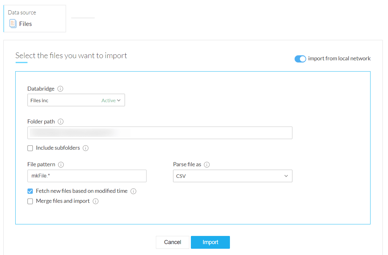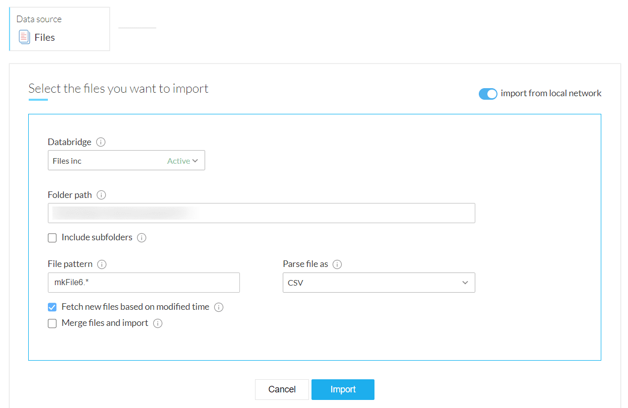 インクリメンタルデータフェッチは、前回の同期以降にデータ元から新しいファイルをインポートするための手法です。Zoho DataPrep では、Zoho Databridge を利用してローカルファイルからインクリメンタルデータをインポートできます。