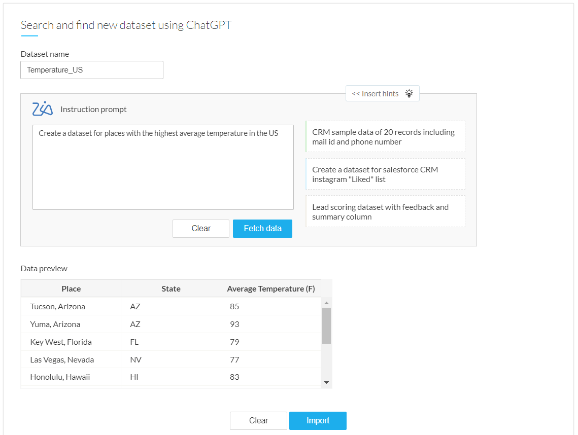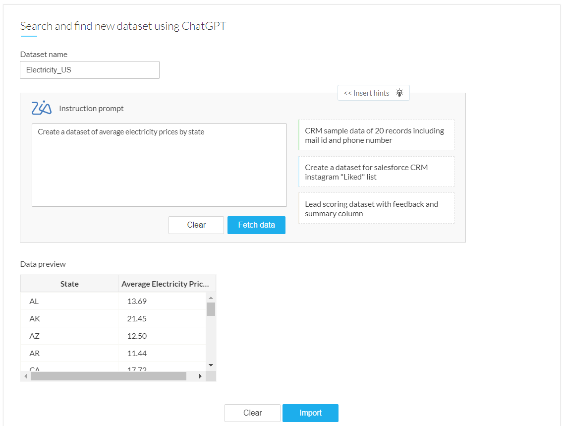 Zoho DataPrepでOpenAIを活用した機能のクイックデモをご覧ください。