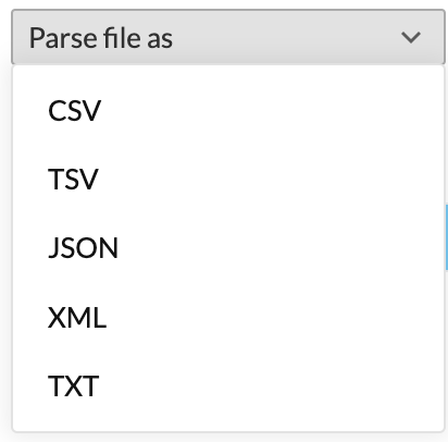 3. Zoho DataPrepでサポートされていないファイル形式をインポートする場合は、ファイルを次の形式として解析オプションを使って、CSV、TSV、JSON、XML、またはTXT形式に変換してみてください。