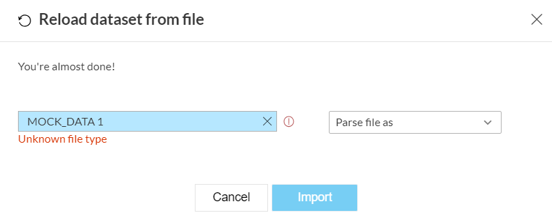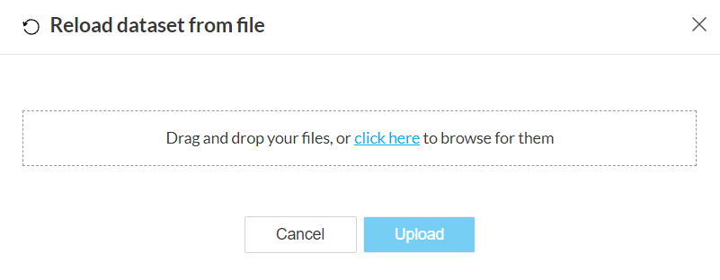 メモ: データセットがローカルファイルからインポートされている場合、更新されたファイルをダイアログボックスにドラッグ&ドロップすることでデータを更新できます。