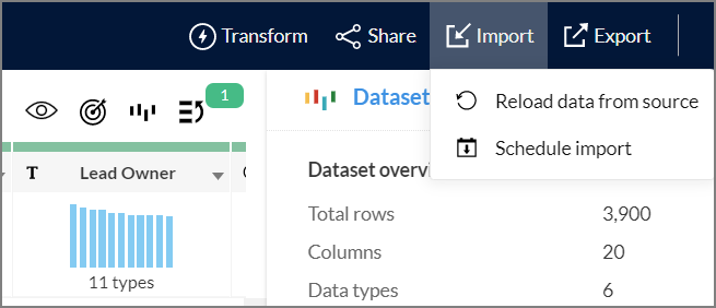 ワークスペース内のデータセットに対して、Schedule インポートするオプションを使い、データのインポートをスケジュール設定できます。インポートのスケジュール設定は、以下の