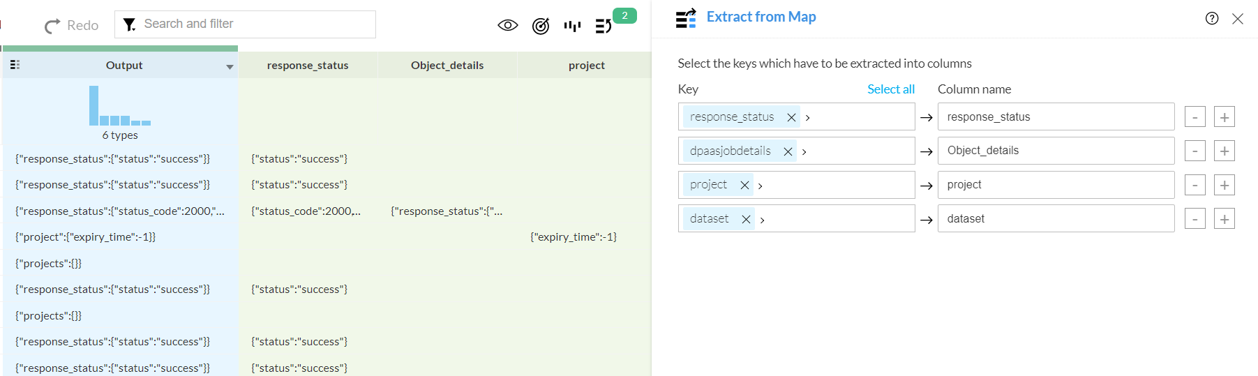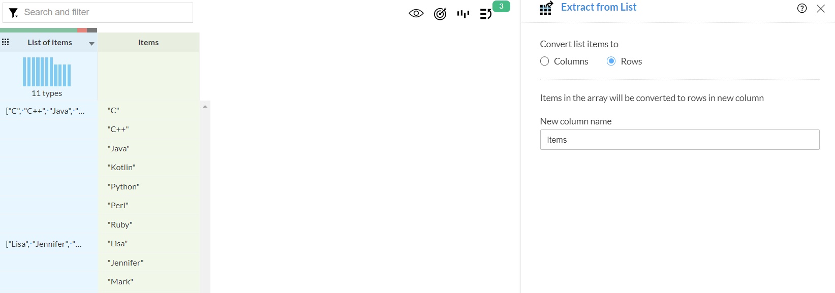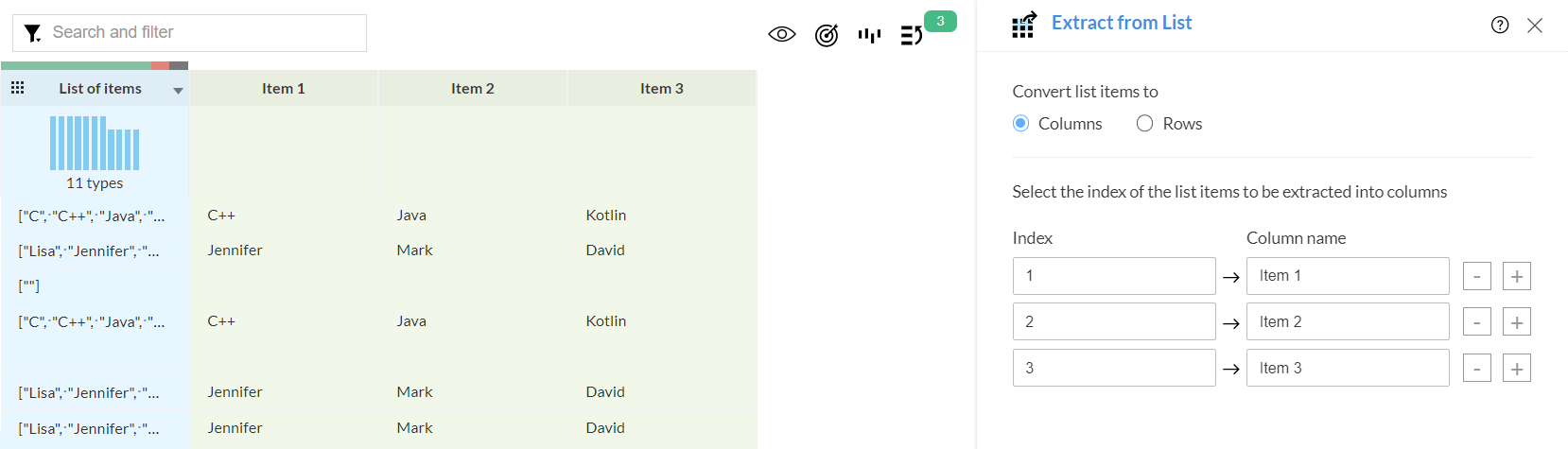 DataPrepでは、次の設定を使用してリストおよびマップ列からデータを抽出できます: