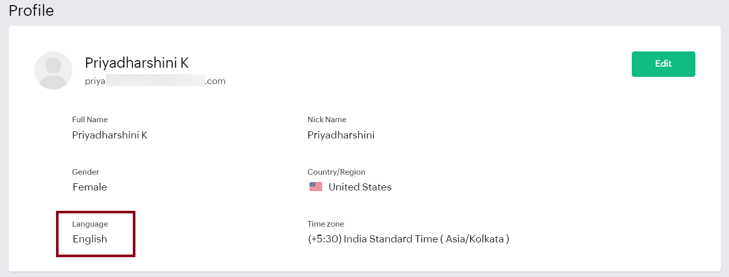 5. 言語オプションを選択し、ドロップダウンから必要な言語を選びます。