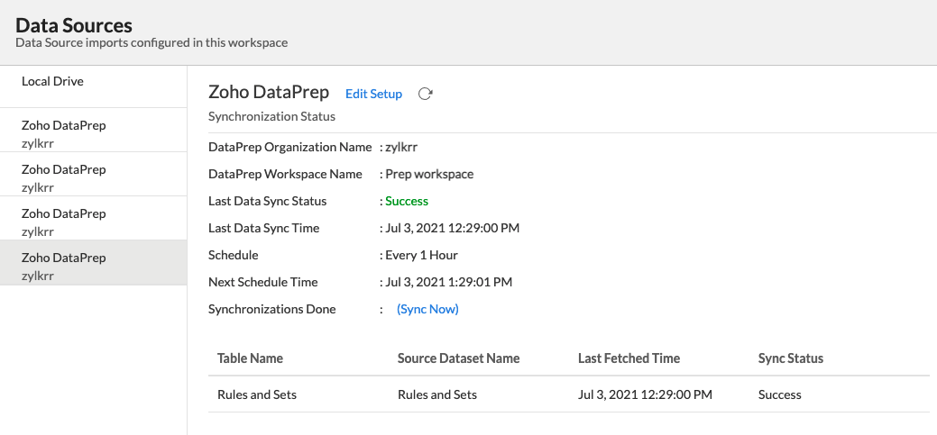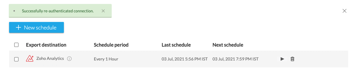 10. Zoho Analytics に戻り、スケジュールの同期ステータスが正常に再開されていることを確認できます。