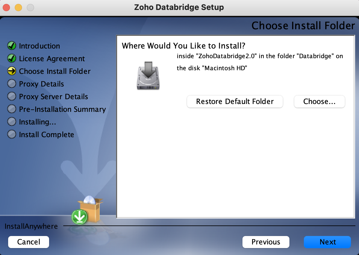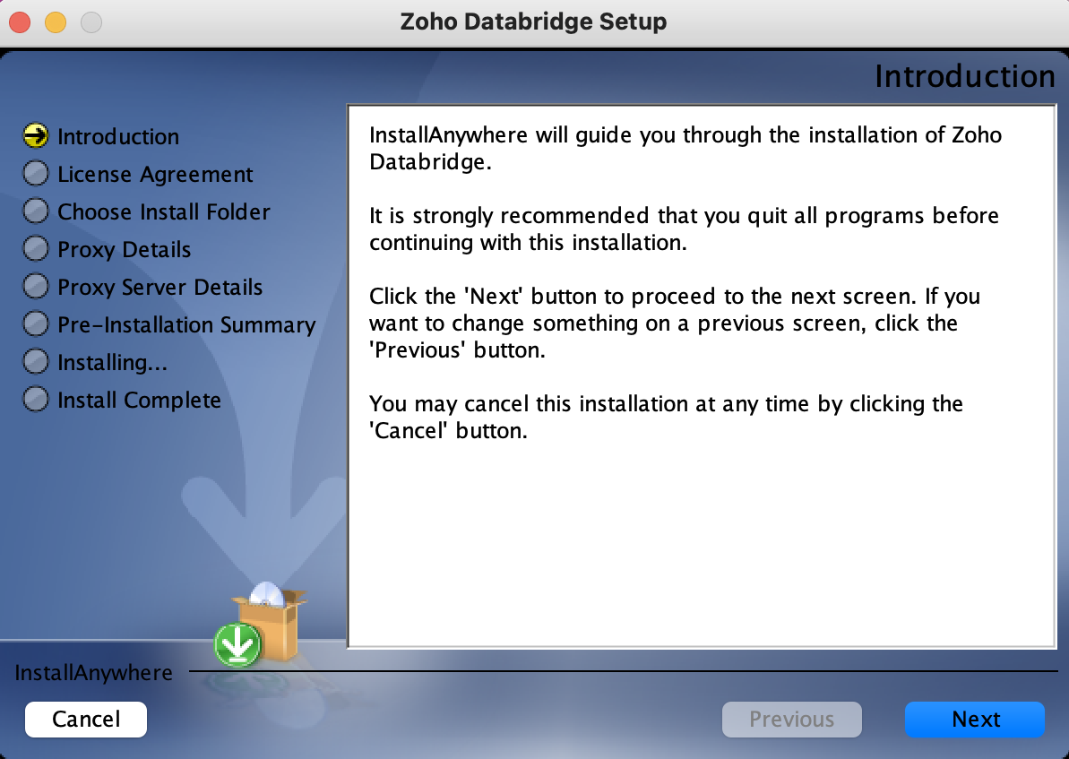 - 次 をクリックして、Zoho Databridge のインストールを開始します。