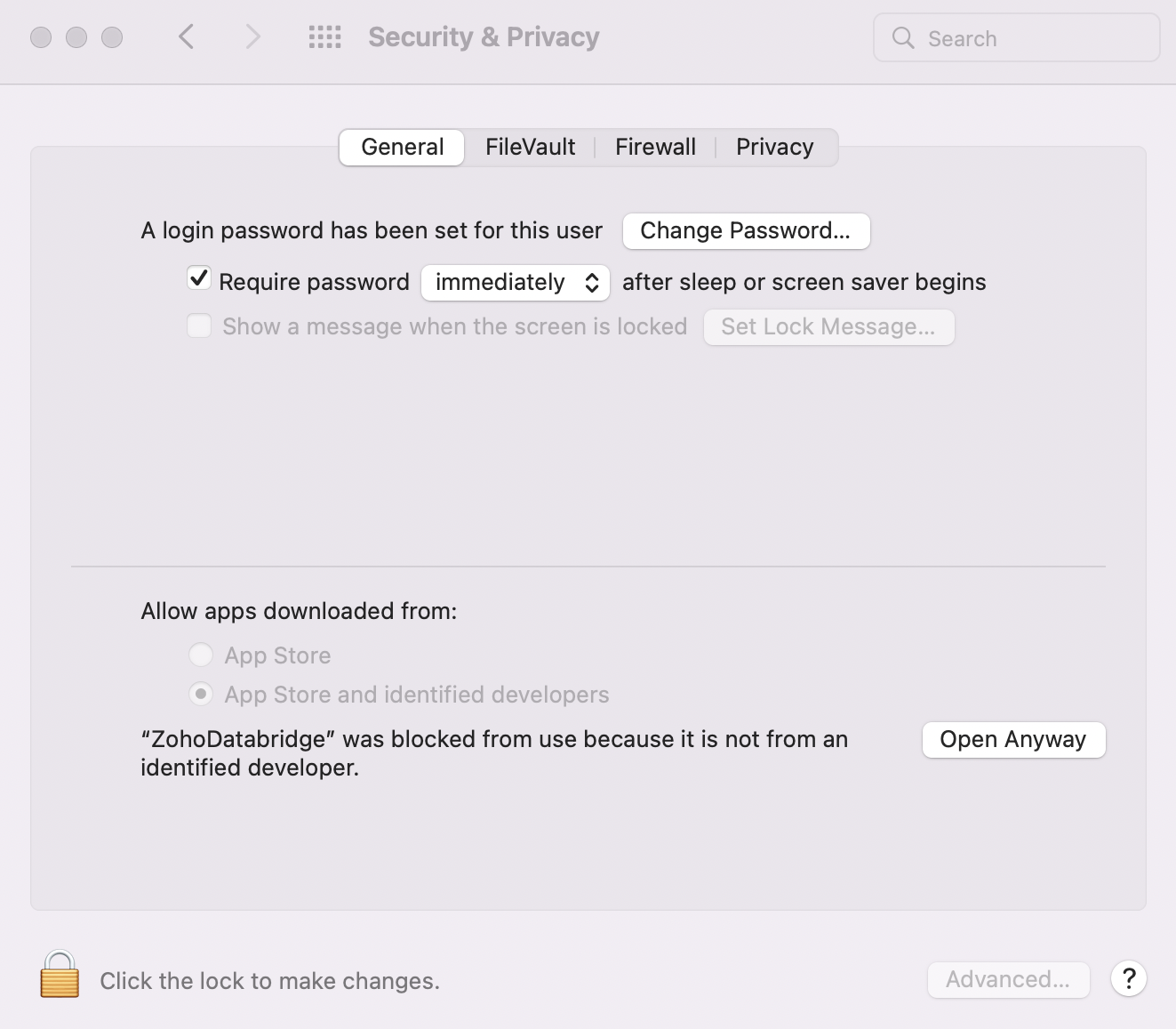 System 各種設定 → Security & Privacy → 一般 に移動し、 開く Anyway をクリックします。