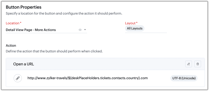 しかし、問い合わせの作成時やデータの更新時に、他のアプリやWebサイトにアクセスしたり、独自に作成したワークフローを実行したりしたい場合もあります。そのような場合、カスタムボタンを使用することで、Zoho Deskの画面内からこれらの処理をかんたんに実行できます。
