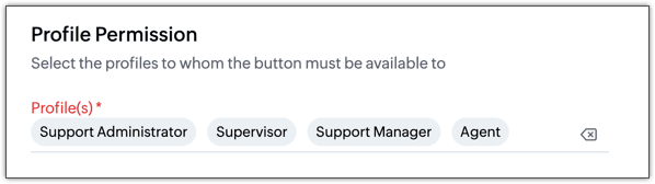 ボタンはすべてのレイアウトに追加することも、特定のレイアウトのみに追加することもできます。ただし、管理者は、ボタンの表示権限を制限して、特定の権限を持つユーザーに対してのみ、ボタンが表示されるように設定することが可能です。たとえば、サブスクリプションのキャンセルに関する問い合わせにサポートマネージャーのみが対応している場合、プラン変更のページにアクセスするためのボタンをサポートマネージャーに対してのみ表示できます。この場合、[担当者]の権限を持つユーザーは、該当の問い合わせに対応することはできますが、ボタンを表示することはできません。