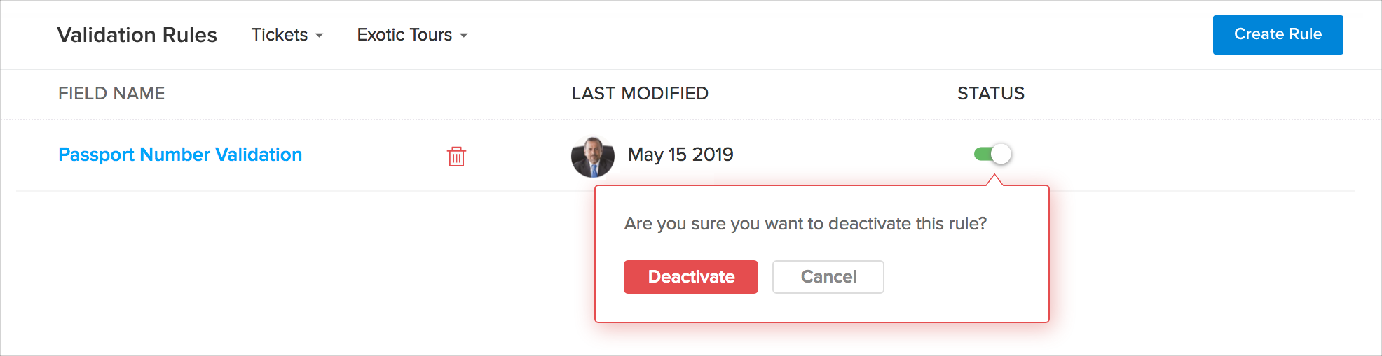 いつでも入力規則を有効、または無効にできます。ルールを無効にすると、ルールは無効としてラベル付けされます。必要に応じて、入力規則を再度有効にすることができます。