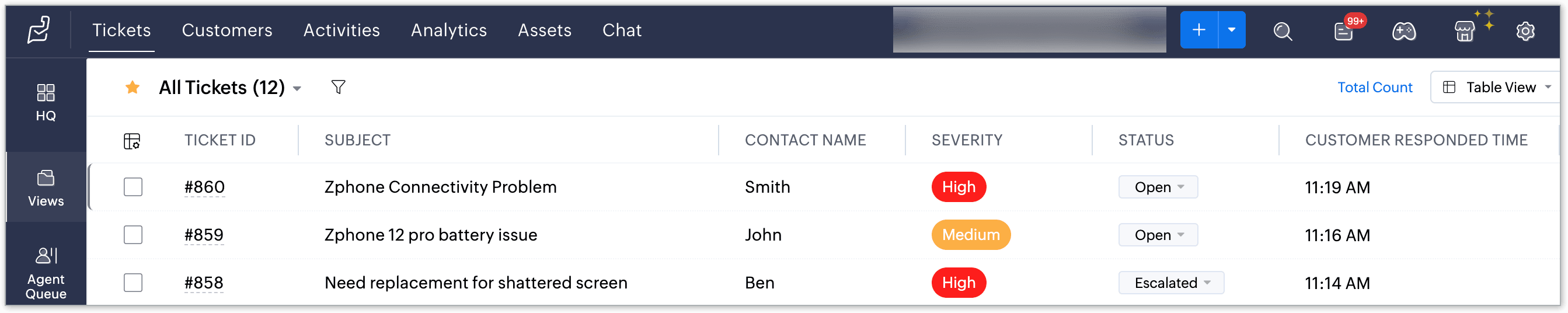 Zoho Deskでは、選択リスト項目と複数選択リスト項目のどちらに対しても、色分けを設定できます。また、標準項目とカスタム項目のどちらにも適用できます。色分けした選択リスト項目は、組織全体の共通設定です。設定すると、組織内のすべてのユーザーの画面に反映されます。