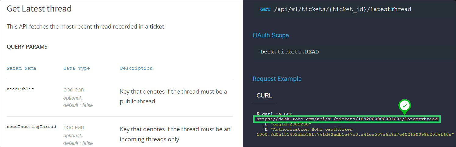 問い合わせに関する顧客とのやりとり(スレッド)において、最新の内容を取得したい場合には、専用のAPI(latestThread)が用意されています。やりとり全体を取得してその中から最新の内容を抽出しなくても、必要なデータを直接的に取得できます。