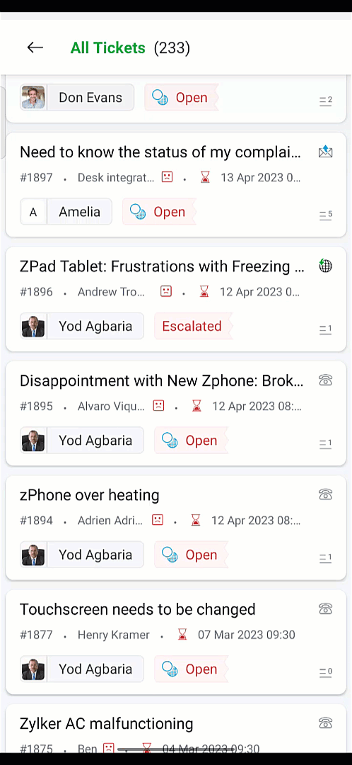 ChatGPT for Zoho Desk拡張機能は、ブラウザーからだけでなく、Radarアプリからも利用できます(Radarアプリは、顧客サポート部門の管理者やサポート担当者が、問い合わせや顧客満足度に関する統計情報を手軽に確認できるモバイルアプリです)。ChatGPT for Zoho Desk拡張機能のWeb版の利用権限があるユーザーは、Radarアプリからもこの拡張機能にアクセスできます。