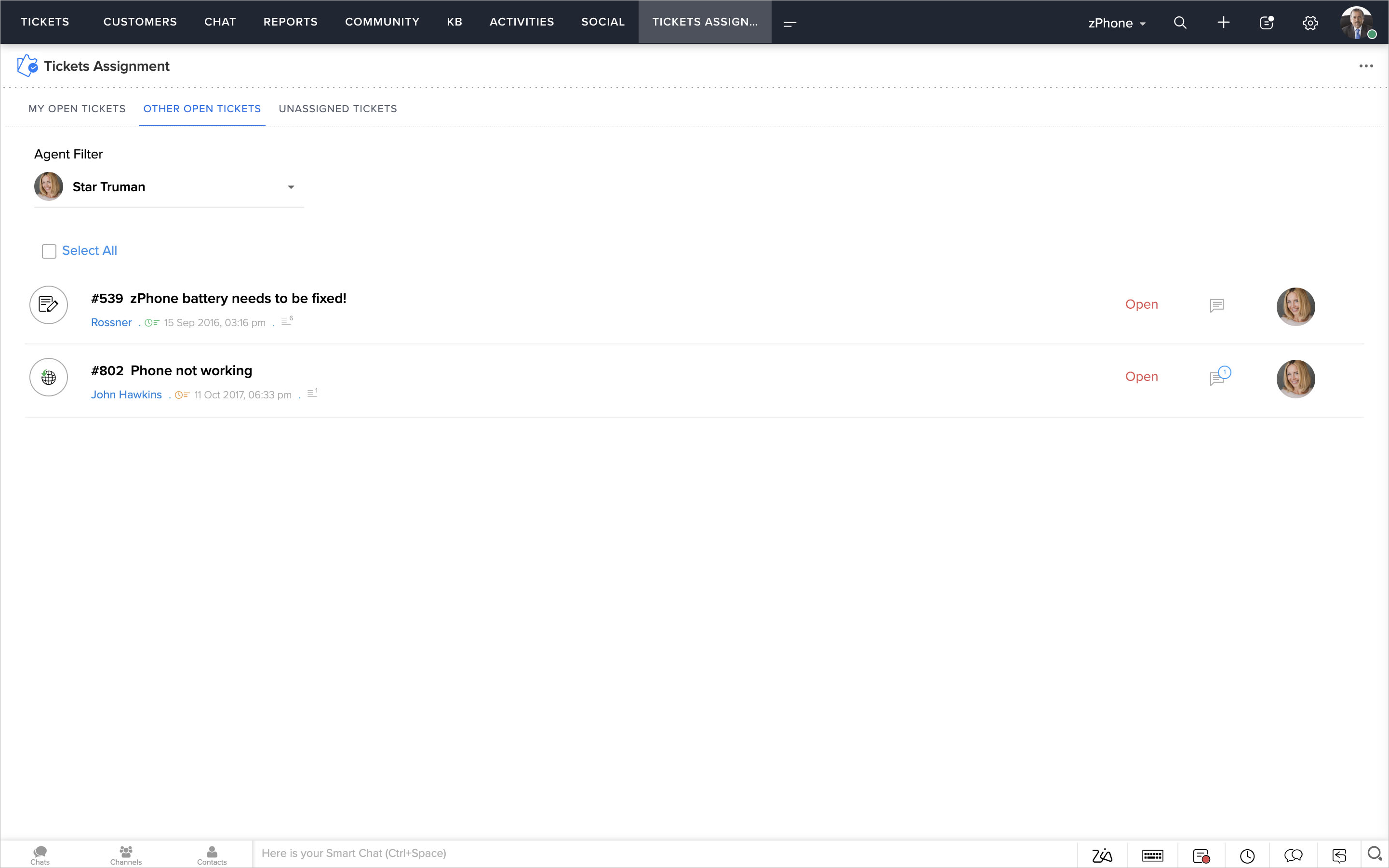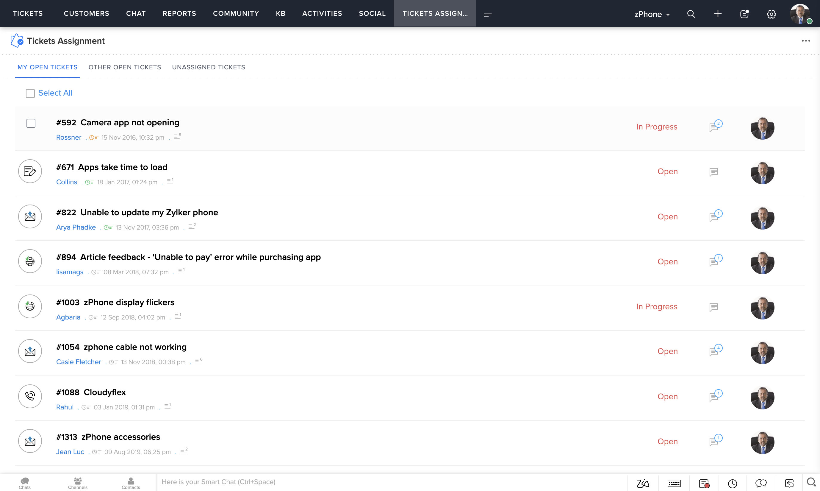 3. [Ticket Assignment]で、自分に割り当てられた問い合わせの一覧を確認できます。