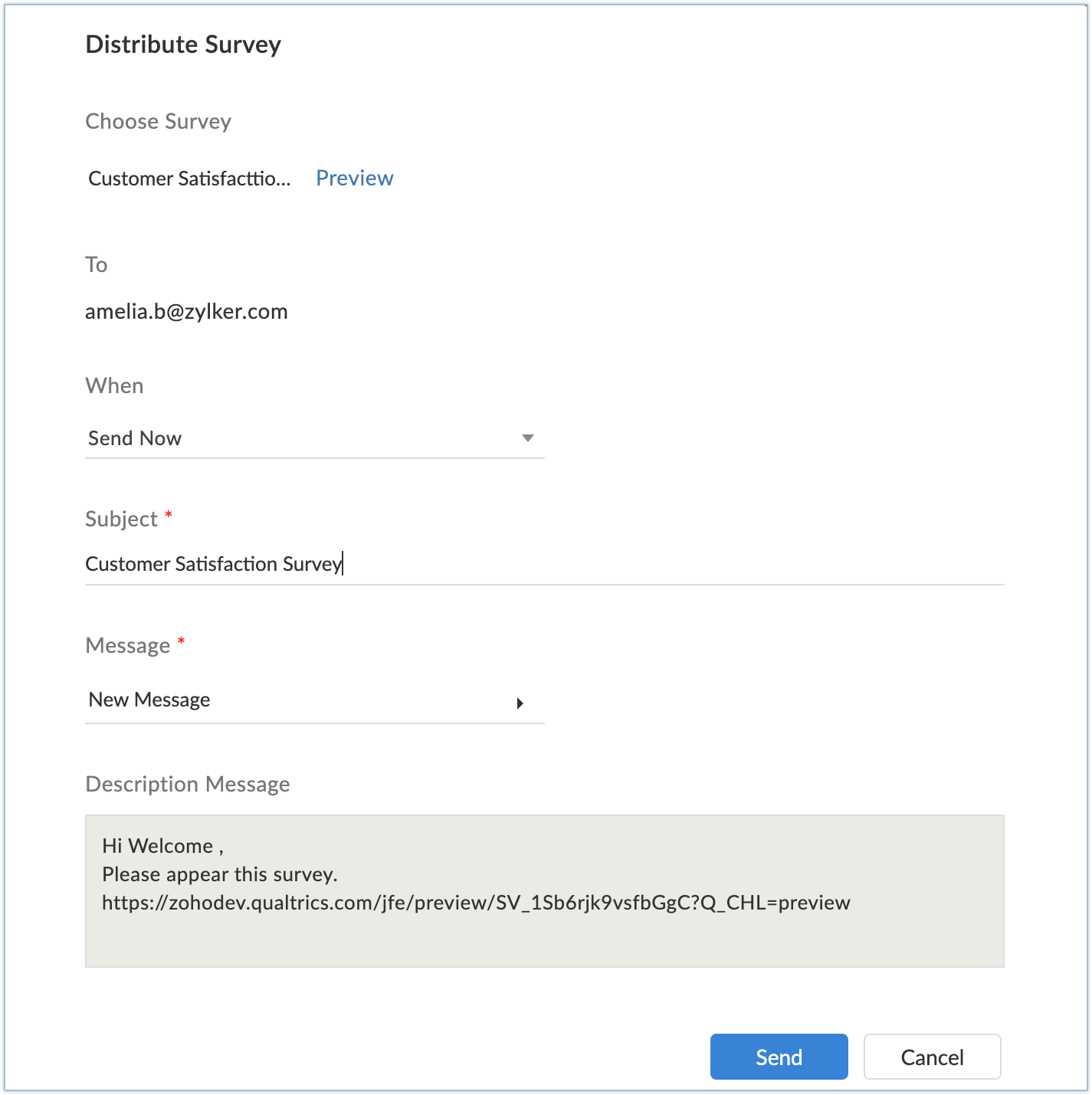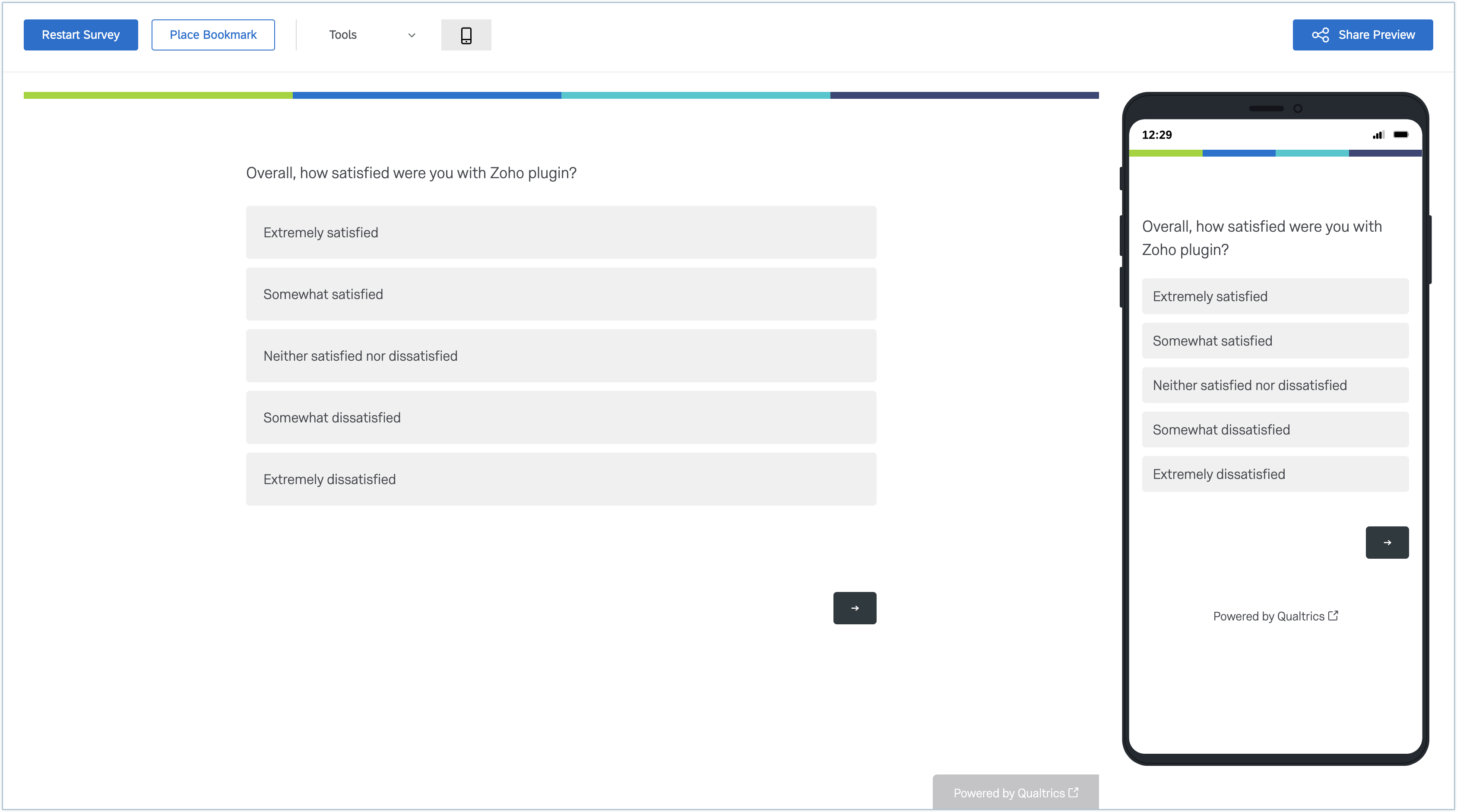 [Preview](プレビュー)ボタンをクリックすると、アンケートを送信する前にアンケートのプレビューを表示できます。