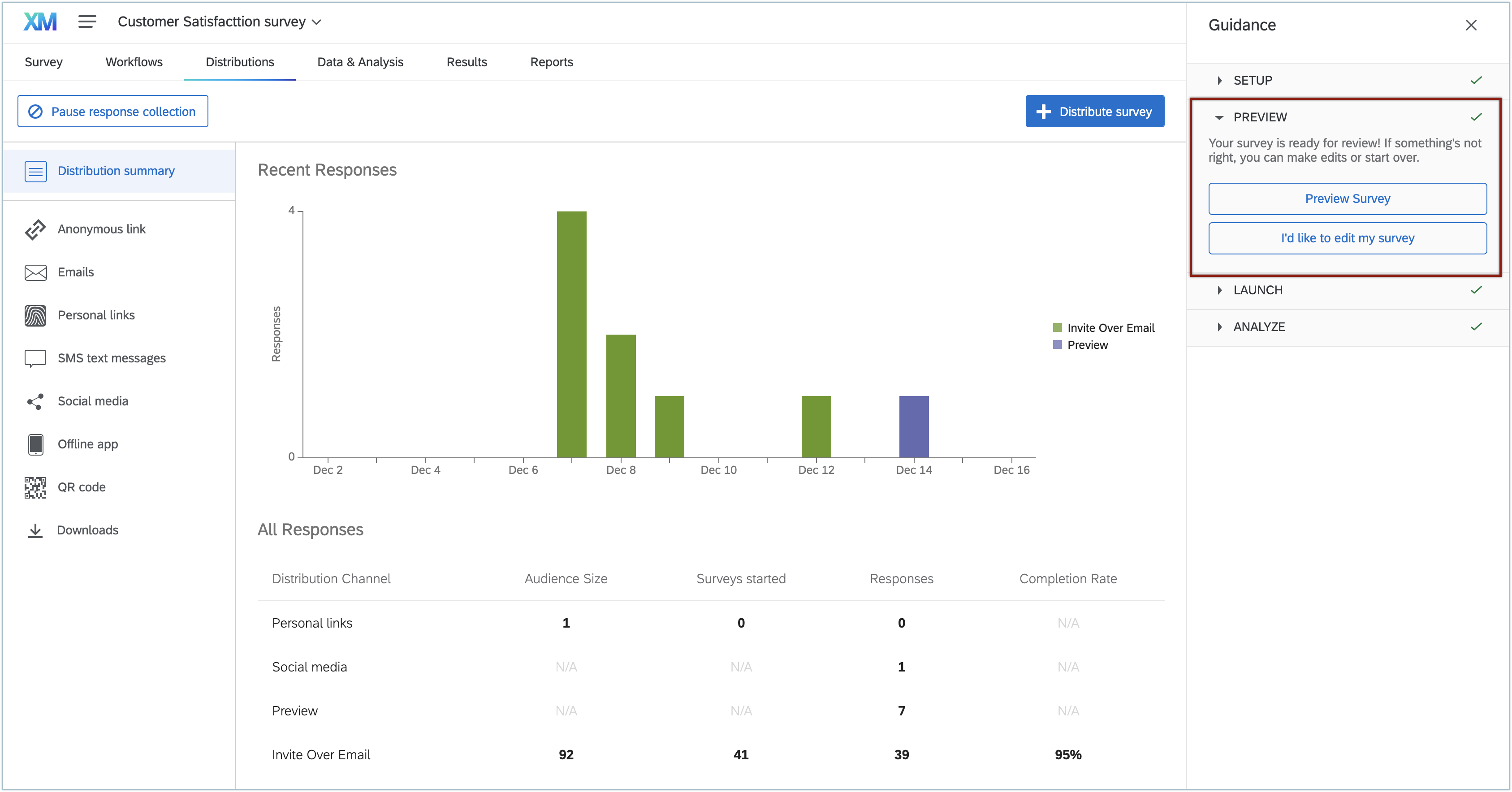 [Distribute Survey](アンケートを配布する)をクリックします。
