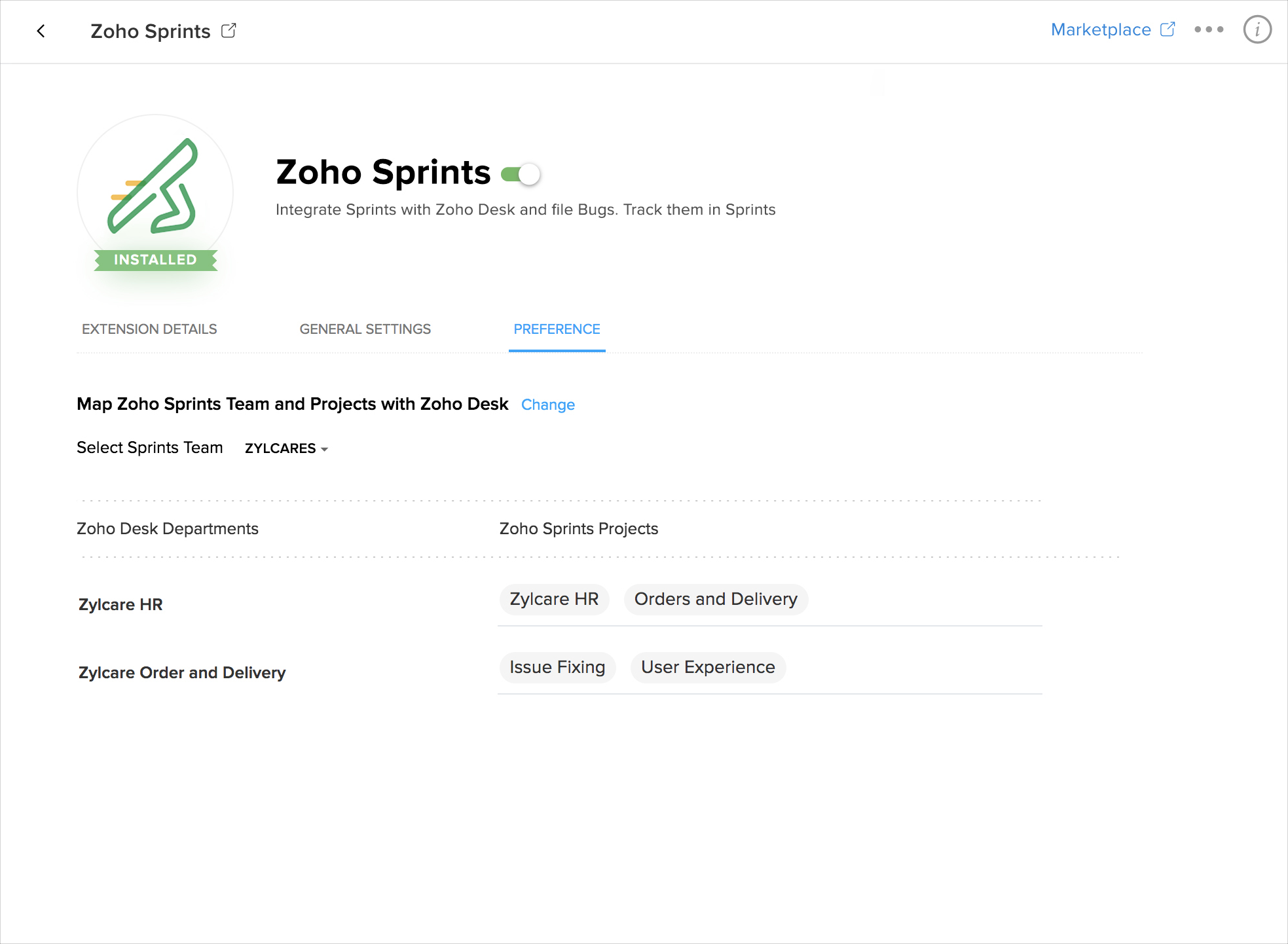 Zoho Sprints拡張機能はZoho Marketplace、または、Zoho Deskアカウントからインストールできます。