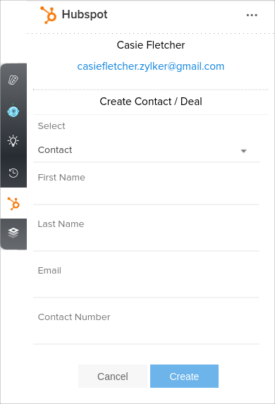 2. [Create Contact](連絡先の作成)ボタンをクリックして、顧客の詳細情報をHubSpotに追加します。