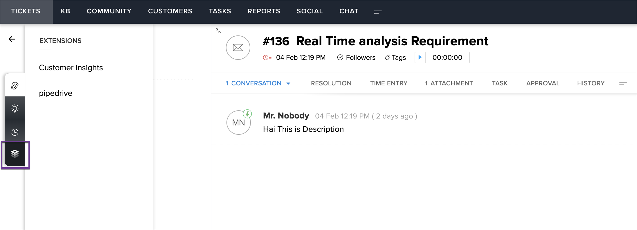 2. 問い合わせの詳細画面の左側にある拡張機能アイコン()をクリックします。インストールされているすべての拡張機能が表示されます。