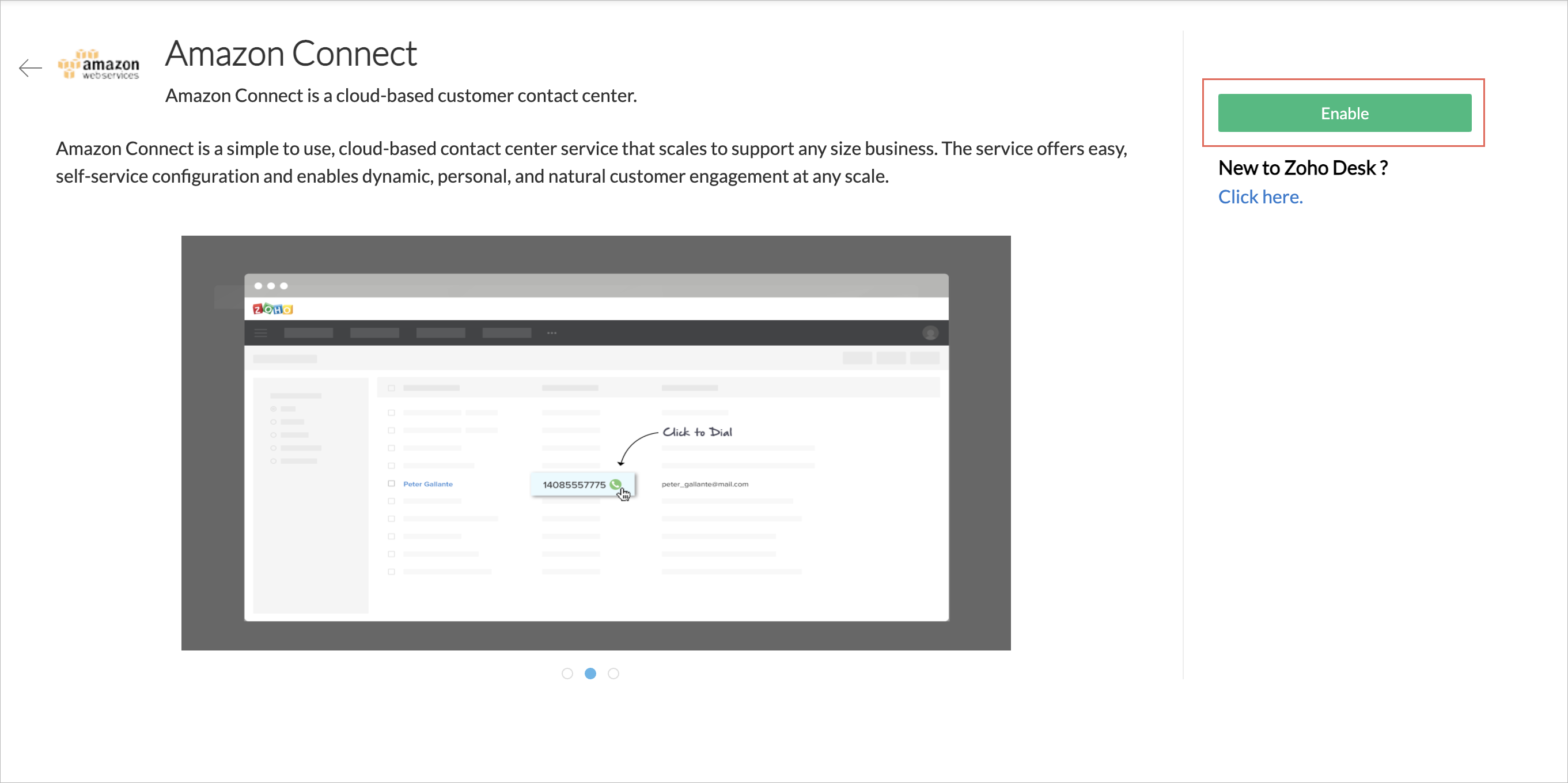 次に、Zoho DeskでAmazon Connect連携を有効にする必要があります。